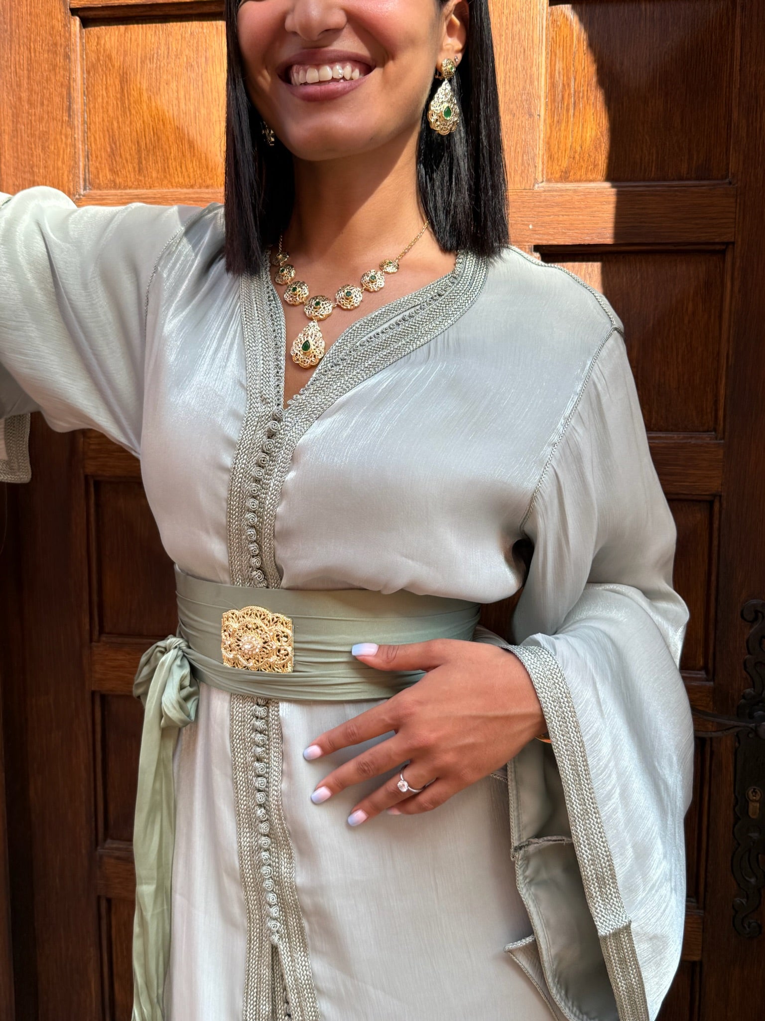 Si vous ajoutez une pièce (caftan ou takchita) à votre panier, les accessoires vous sont offerts automatiquement dans le cadre de la location !