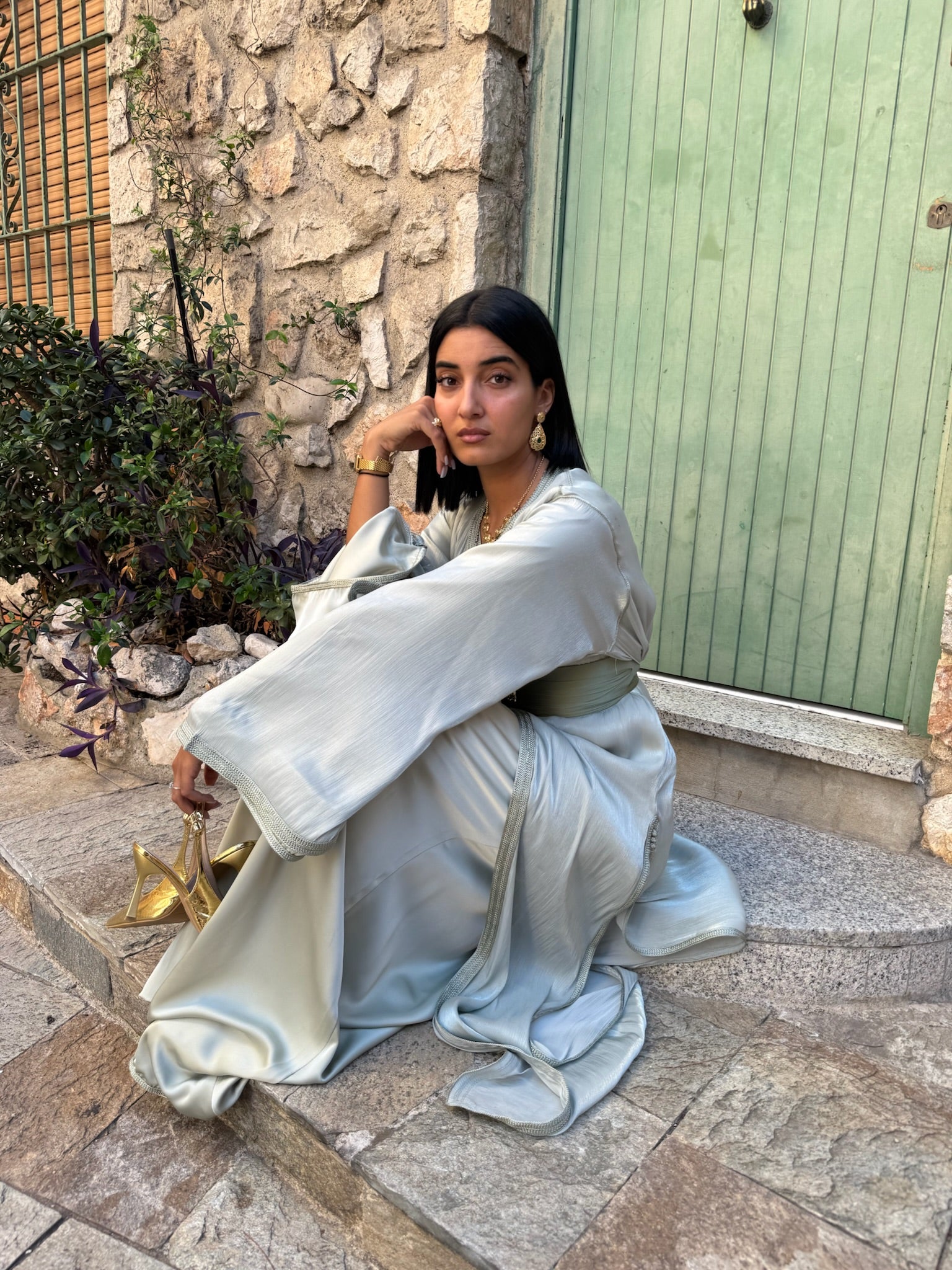 Cette takchita en organza vert sauge est fluide, légère et vous sublimera lors de vos événements.